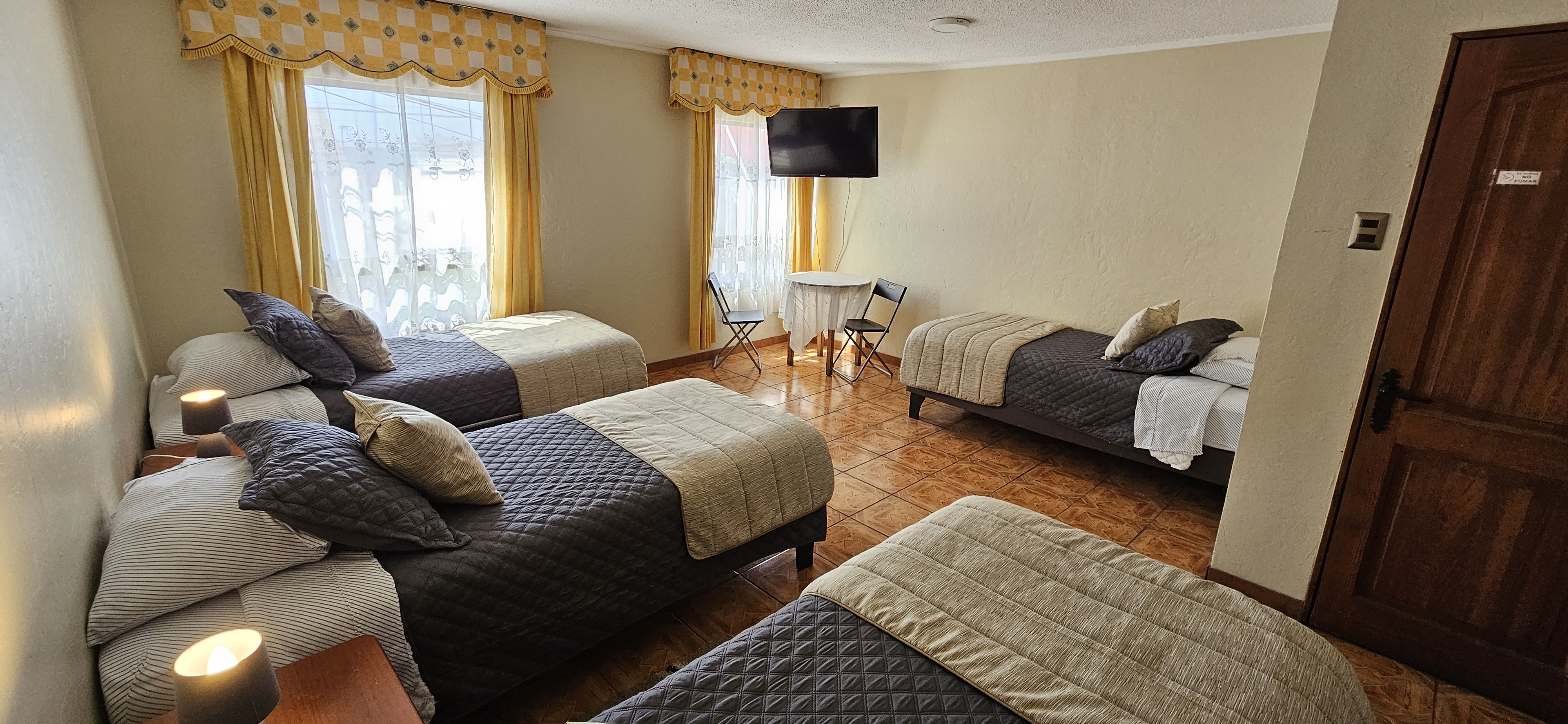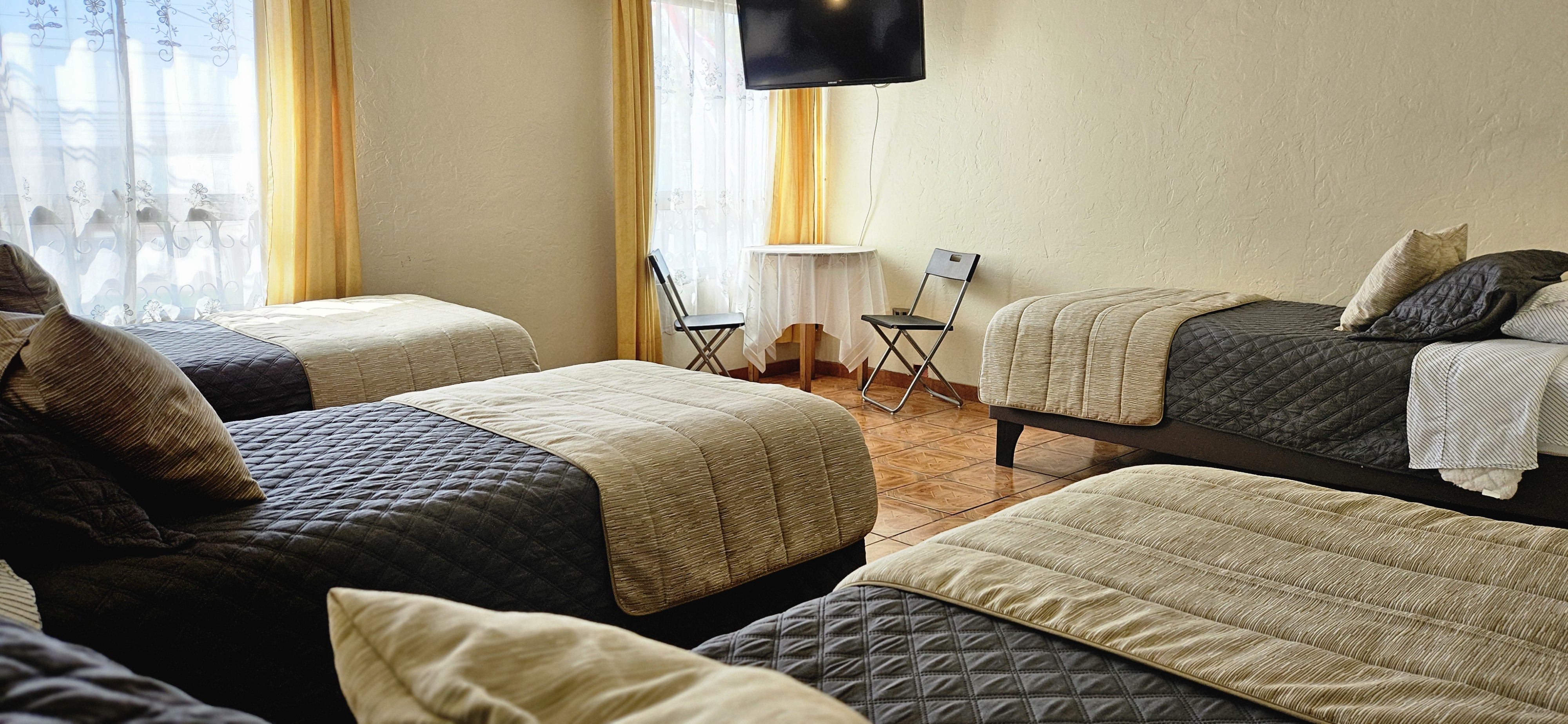 Habitación diseñada para 4 personas, equipada con cuatro camas individuales o con dos camas matrimoniales .